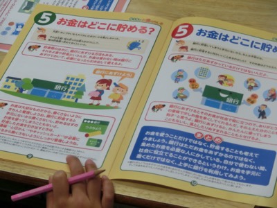 オリジナルの教材を使って、お金の仕組みの基礎を学びました。