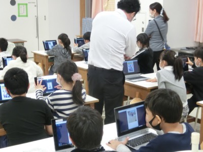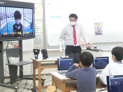 タブレットで資料画像を配布して、それぞれが資料を見ながら少年消防団について考えていました。子どもたちが活躍している様子を、他校の先生に見てもらえたでしょうか。