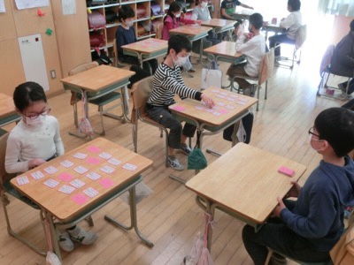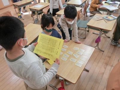 百人一首の練習も始まりました。これは3-4です。