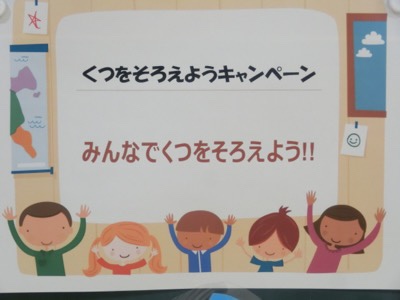 美化委員会が先日の委員会活動のときに計画していた「くつをそろえようキャンペーン」が始まりました。靴箱を整える意識を高める活動です。