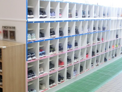 キャンペーンの成果が出て、靴箱の中の靴がきれいに揃っています。みんなが意識できるように、子どもたちのアイデアで委員会活動が進められています。