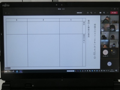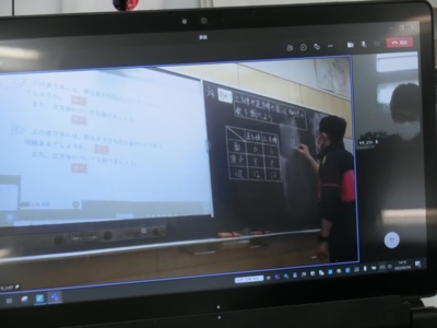 欠席の子にオンラインで配信していました。タブレットで授業を見るとこんなふうに見えます。