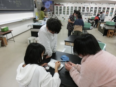 5-1の理科の授業です。水溶液を作って、メスシリンダーで計量する活動をしていました。