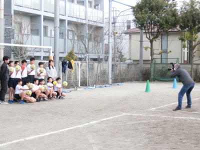 3年生のクラブ見学と同時進行で、6年生が卒業アルバムのクラブ写真を撮っていました。これは屋外スポーツクラブです。