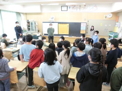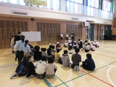 今日のクラブ活動は、各クラブの様子を3年生が見てまわる「クラブ見学」です。4年生になったらどのクラブに入るか、目星をつけておくためです。これは、卓球クラブの様子を見ているところです。3年生に体験をさせてくれました。