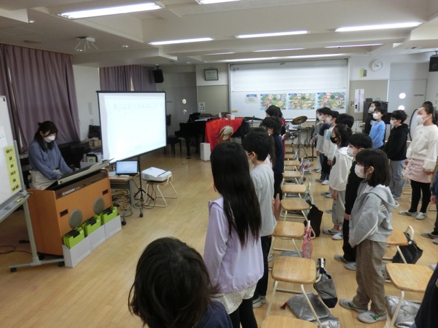 5-3は、音楽専科の安藤先生の授業で校歌を歌っていました。