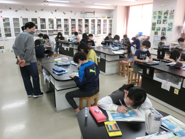 理科室では、5-1が理科専科の北條先生の授業です。雲の形を学習していました。