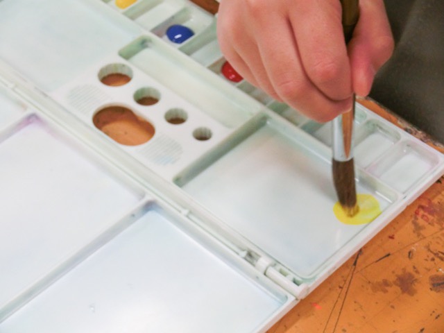 絵の具をパレットに出して、適量の水で薄めるところから練習していました。適量の、というところが難しい。