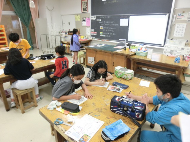 図工室では、専科の青柳先生が「心のもよう」というテーマの授業をしていました。