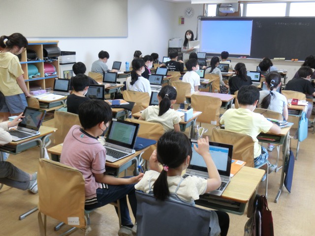 こちらは4-3の理科の授業です。ヒキガエルについてタブレットで調べて、わかったことを発表していました。