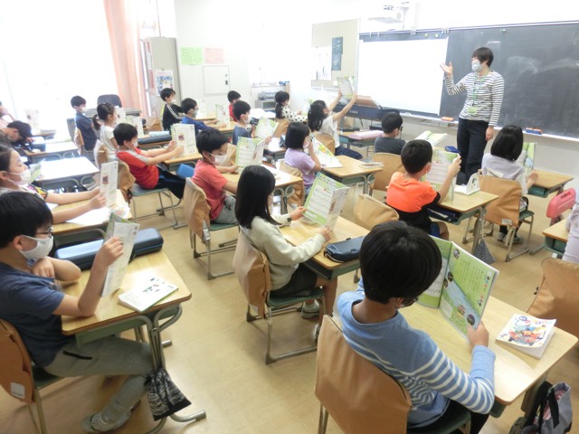 3-4は講師の可児先生の音楽の授業です。「春の小川」を明るい声で歌っていました。