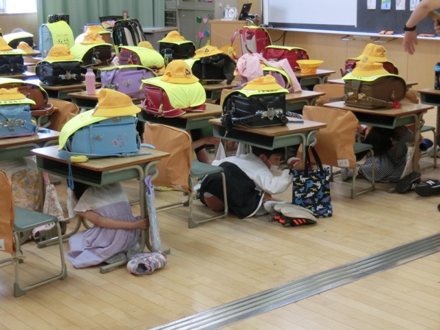 1年生は初めてでしたが、教室で机の下に潜って身を守ることができていました。