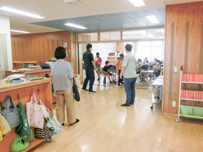 引き続いて、引き取り訓練を行いました。引取り人証明書を持った保護者の方が、教室まで迎えに来てくださいました。東日本大震災クラスの大地震が発災した場合、このような方法で引き渡すことになります。