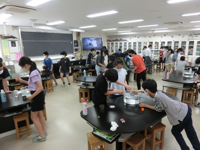 理科室では6-1が「ものの燃え方」の実験をしていました。