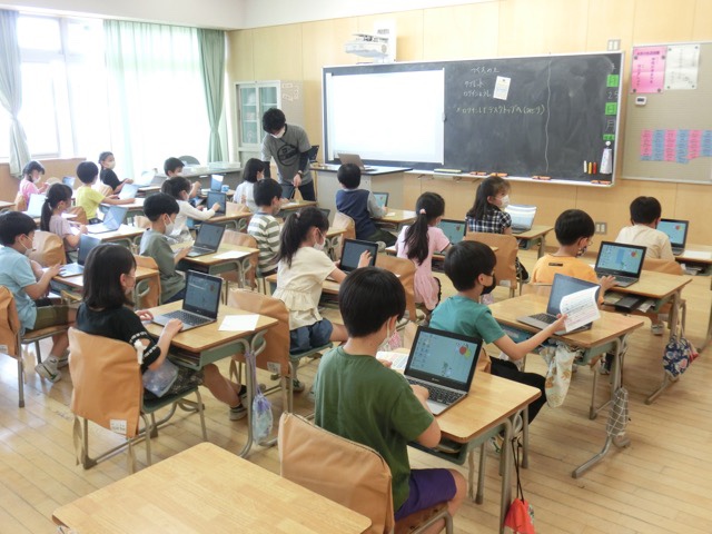 2-3は、2年生になって初めてタブレットにログインをしていました。IDとパスワードを入力して、ドリルに取り組むまでの流れを復習しています。