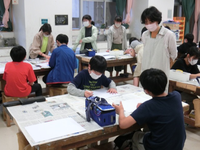 思い思いの色を塗り重ねています。それぞれが自分の気持ちに向き合って、色で表現していました。