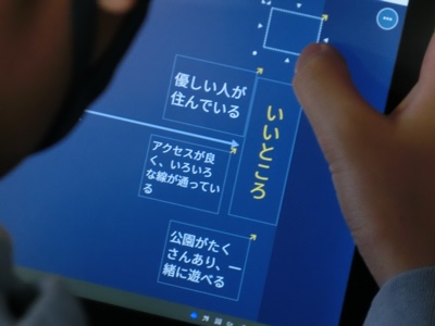それぞれがタブレットに天沼地域のいいところを書き出していました。