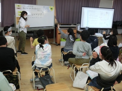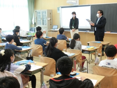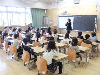 4-2は、ALT(外国人英語指導助手)のエドワード先生と岡部先生による英語活動です。