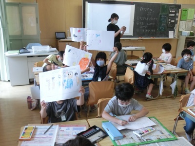 1-4は図工で「すきなもの」「すきなこと」を描いていました。
