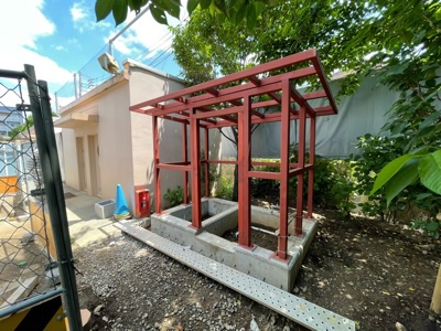 以前にあった円形の飼育小屋は増築工事の関係で取り壊され、新たに少し小さめの飼育小屋が作られています。増築校舎とあわせて、完成をお待ちください。