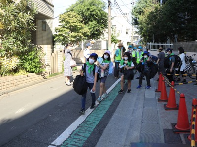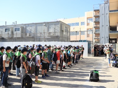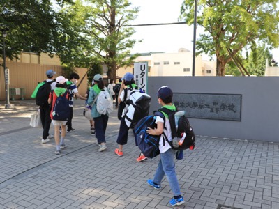 今日から2泊3日、5年生が富士移動教室に出かけます。今回の移動教室も目の覚めるような青空の下、出発式を行いました。