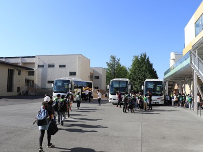 移動教室の際は、毎回日大二高さんにご協力いただいて、バスを待機させてもらっています。