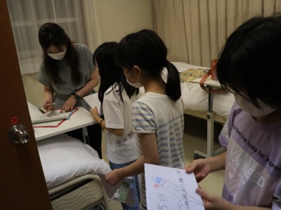 各班の保健係が、班員の健康カードを持って保健室に行き、看護師さんにチェックしてもらいます。体調を大きく崩した子はいませんでした。