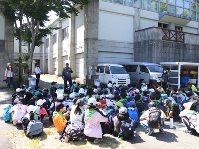 富士学園の方が、水筒の補充に来てくださいました。冷たい水が飲めて子どもたちは嬉しそうでした。ハイキング中は、休憩や水分補給を十分にしました。
