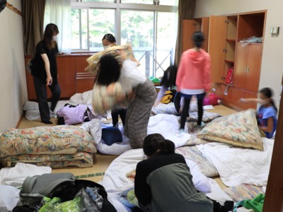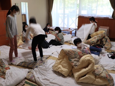 5年富士移動教室3日目②寝具の片付けと朝食