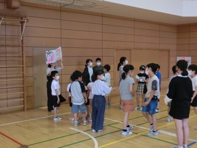 こちらは「マジカルバナナ」です。たてわり班は、高学年のリーダーシップを高め、異学年の交流を深めるために年間を通じて行われます。