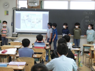それぞれ、担当した地域の中で交通量が多くて危険な場所などを地図に示して発表しました。これは4-3です。