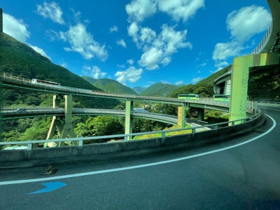 河津ループ橋をぐるぐる回って下ります。後ろの2号車が3号車が見えます。