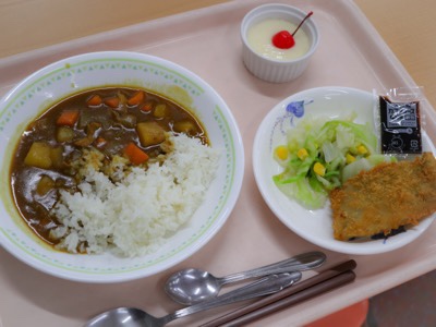 夕食のメニューは、カレーライス、魚のフライなどでした。