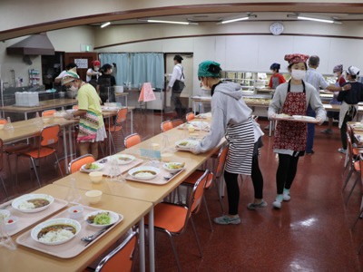 夕食の前に、各部屋の食事係が配膳をしました。
