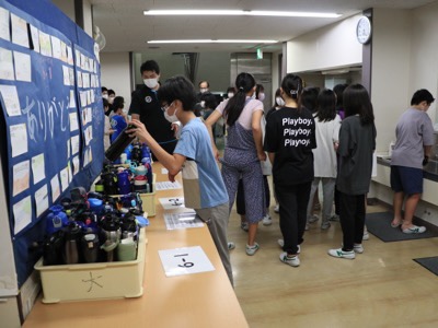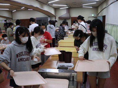 食事係以外のメンバーは、準備が整ったころに食堂に行きます。その時に、水筒を洗って置いておくと朝までに弓ヶ浜クラブの方がお茶を入れてくれます。