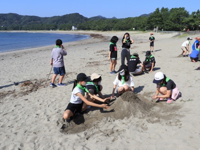 残りの時間で、今度は明るい砂浜で砂遊びです。