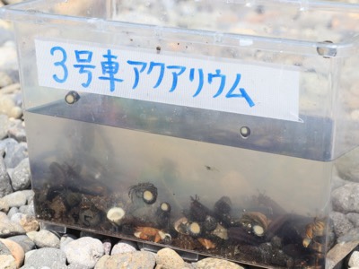捕まえたものは、バスの号車ごとに水槽に入れて水族館を作りました。