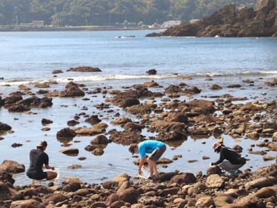 磯観察の後は、海岸でビーチグラスと貝拾い。