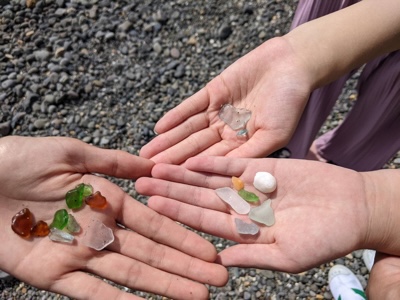 たくさんのビーチグラスと貝を拾うことができました。