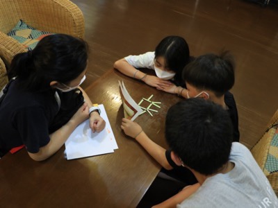 2日目の夜のプログラムは「室内レク」です。グループごとに館内を歩いて問題を解いて得点を競います。