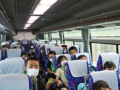 帰りの車中ではアニメのDVDが流され、それに集中する子も疲れて寝る子もいました。