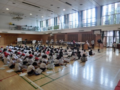 5年生もアリーナで全体練習です。おんがくかいにむけて、合唱も合奏もこれからさらに仕上げていきます。