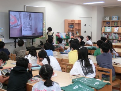 図書館では、学校司書の古賀先生が4-1の子どもたちにお話をしていました。