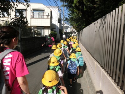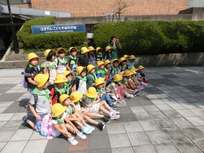 今日は1年生の生活科見学です。担任以外に、1クラスにつき2人の学校支援本部(AW)の方が付き添ってくれます。