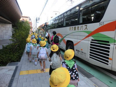 バスに乗り込みました。行き先は、川崎にある「はまぎんこども宇宙科学館」です。