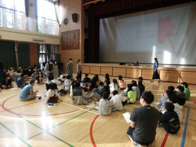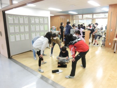 6時間目は、5・6年生が体育発表会の係に分かれて打ち合わせや準備をしました。これは審判係。各学年の短距離走の時に活動します。