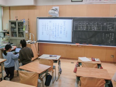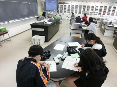 理科室では、放送係が放送原稿を読む練習をしていました。5・6年生の各クラスが、学年1つずつを担当して当日活躍します。