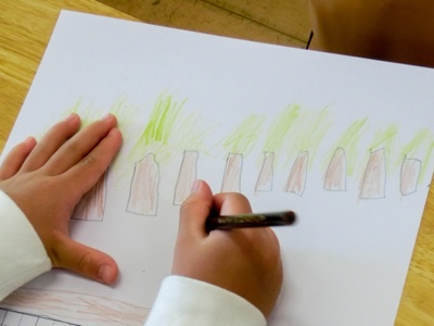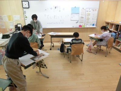 こだま学級の図工の時間です。音楽会での自分の姿を描いていました。