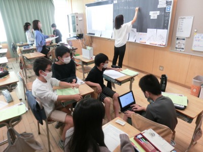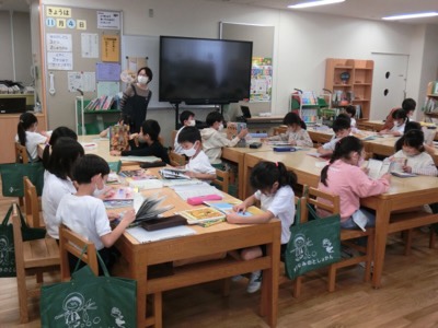 「We all live on the Earth.」というテーマで、動物について調べてグループで意見発表する準備をしていました。