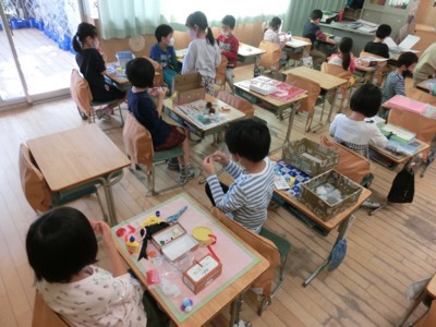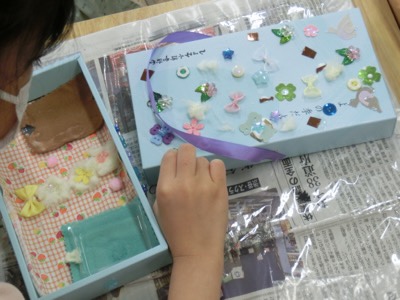 1-2は図工で「かざってなに入れよう」という工作をしていました。